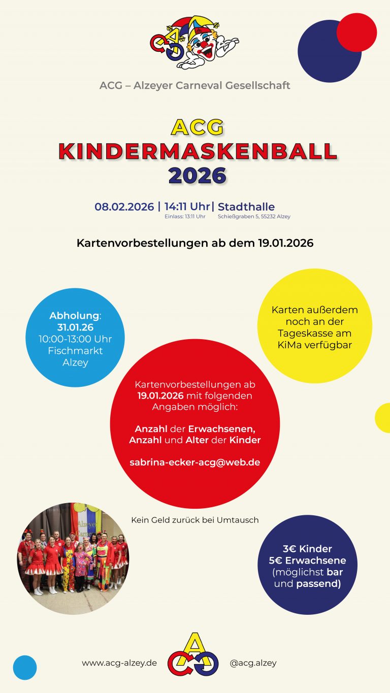 Ab dem 19.01.2026 könnt ihr Karten für unseren Kindermaskenball am 08.02.2025 um 14:11 Uhr vorbestellen 🎭